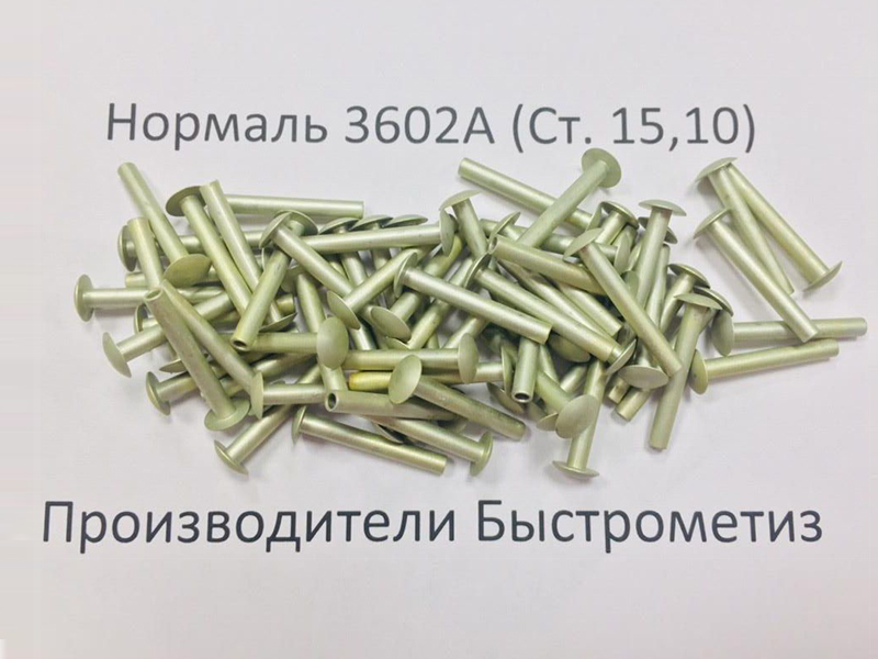 Заклепки под развальцовку по нормали 3602А – это специальный крепеж, так как его конструкция состоит из цилиндрического стержня и плосковыпуклой головки, ими можно соединять и закреплять металлические детали между собой, по средствам развальцовывания стержня и получения бурта, фиксирующего соединение.