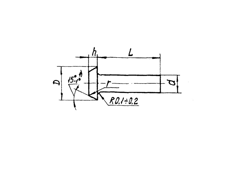 Конструкция заклёпки состоит из цилиндрического стержня и плоской головки.