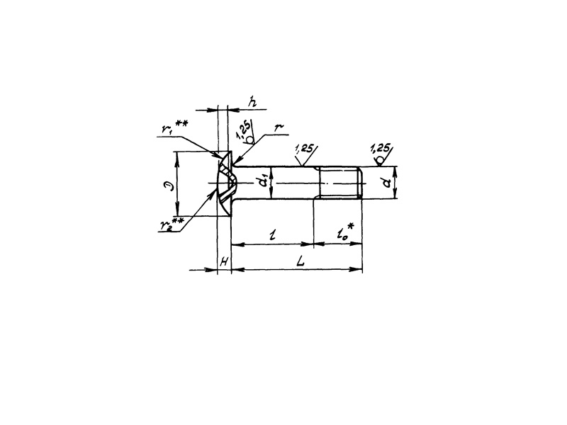 Конструкция болта состоит из цилиндрического стержня с плоско-выпуклой головкой.