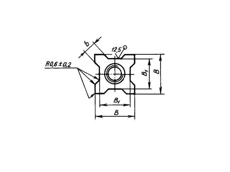 Конструкция гайки состоит из цилиндрического пустотелого стержня с внутренней резьбой и основания.