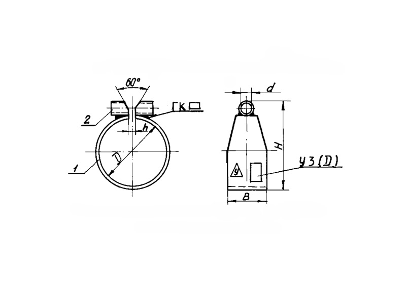 Конструкция хомута состоит из металлической ленты с кольцом и втулкой.