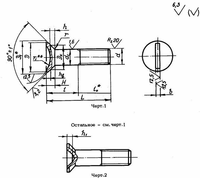 ОСТ 1 31226-83 болты с потайной головкой углом 90гр. с полем допуска диаметра стержня f19