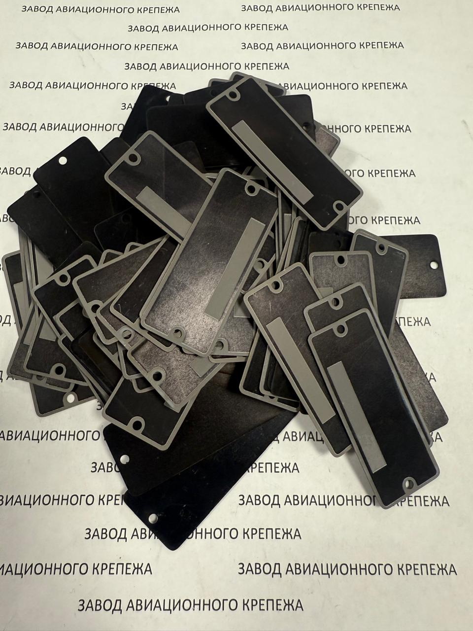 Конструкция знаков состоит из прямоугольной пластины с полем для заводского номера изделия и отверстиями для крепления.