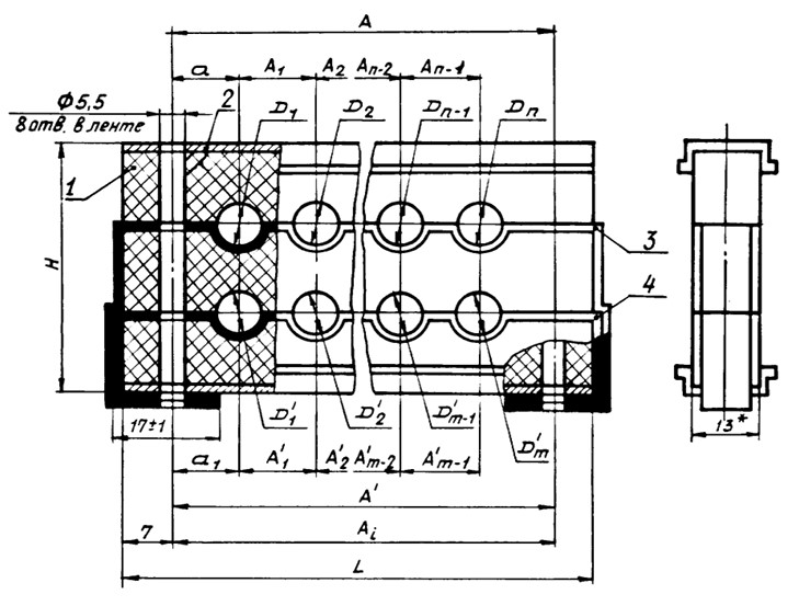 Колодка (D1-Dn)/(D'1-D'm)-ОСТ 1 13164-78