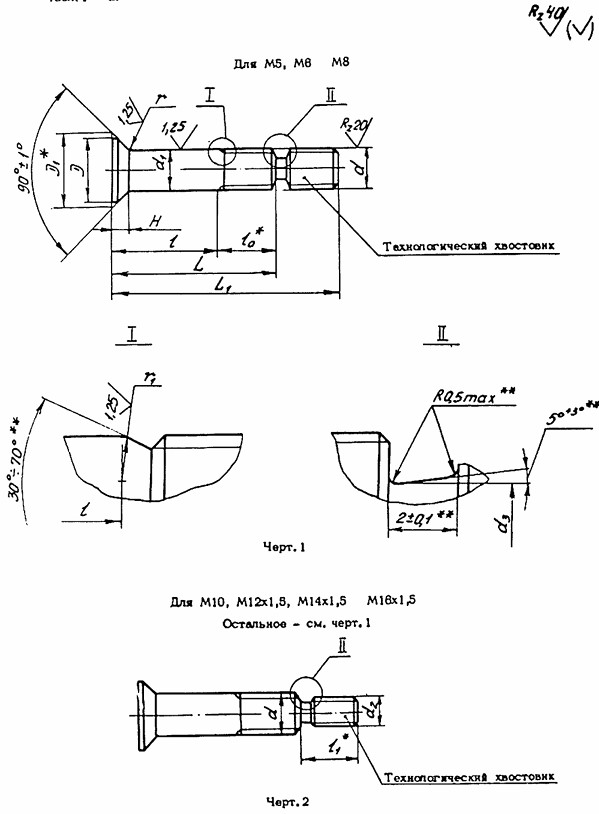 ОСТ 1 31043-79 БОЛТЫ С ПОТАЙНОЙ ГОЛОВКОЙ УГЛОМ 90ГР С ТЕХНОЛОГИЧЕСКИМ ХВОСТОВИКОМ