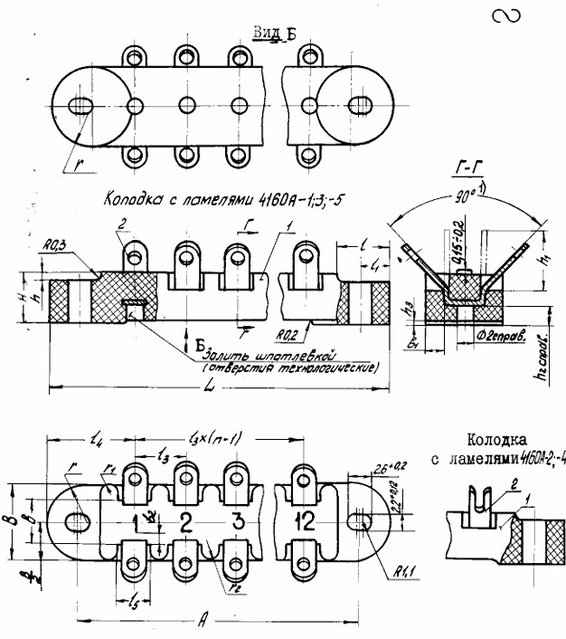 Конструкция колодки состоит из металлических контактов Ламели 4160А pdf  запресованых в пресс-матерьял.