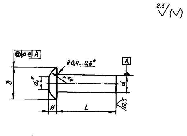 Конструкция заклёпки состоит из плоско-скругленной головки и цилиндрического стержня.