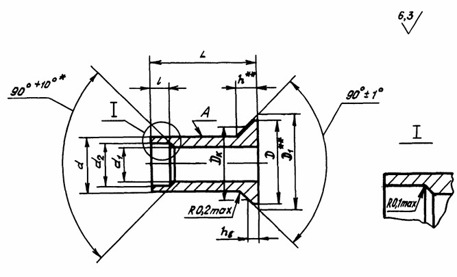 ОСТ 1 10641-72 КОРПУСЫ ЗАКЛЕПОК С ПОТАЙНОЙ ГОЛОВКОЙ С УГЛОМ 90 ГРАДУСОВ