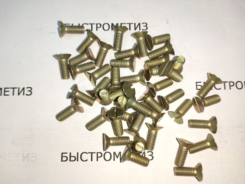 Конструкция винта состоит из потайной головки со шлицем и цилиндрического стержня с резьбой.