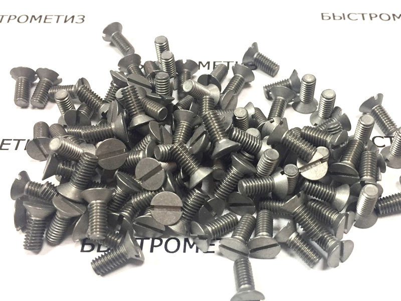 Конструкция винта состоит из потайной головки со шлицем и цилиндрического стержня с резьбой.