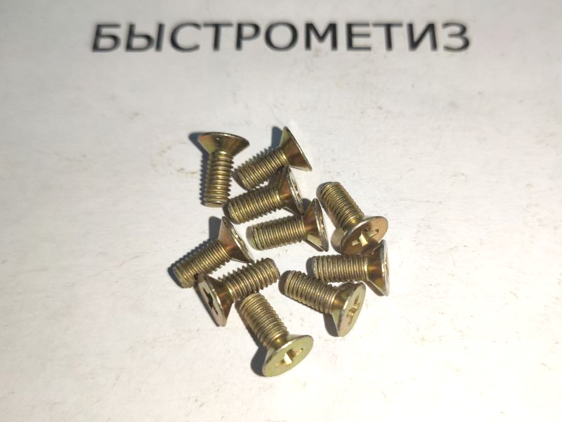 Конструкция винта состоит из потайной головки с крестообразным шлицем и цилиндрического стержня с резьбой.