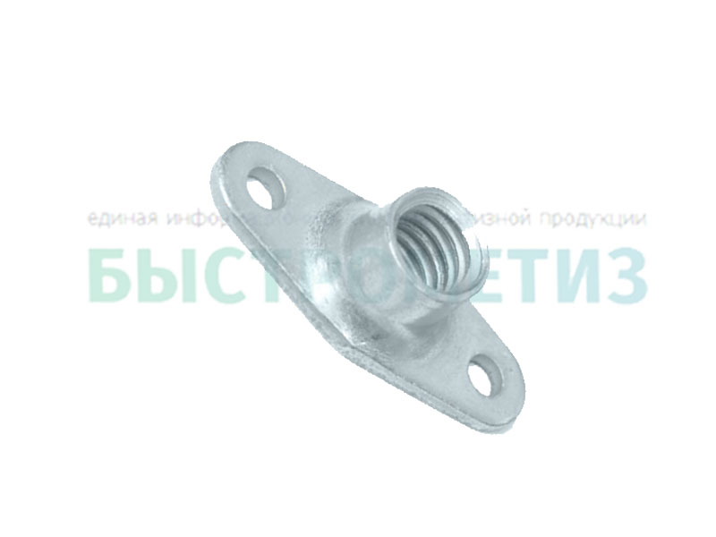 Конструкция гайки состоит из цилиндра с внутренним отверстием с резьбой и овальное основание, в котором два отверстия для крепления
