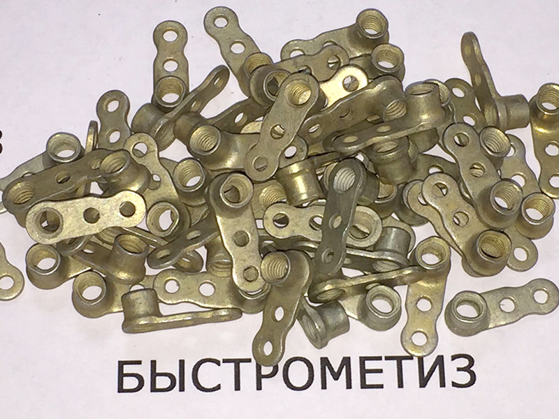 Конструкция гайки состоит из цилиндра с внутренним отверстием с резьбой и овальное основание, в котором два отверстия для крепления