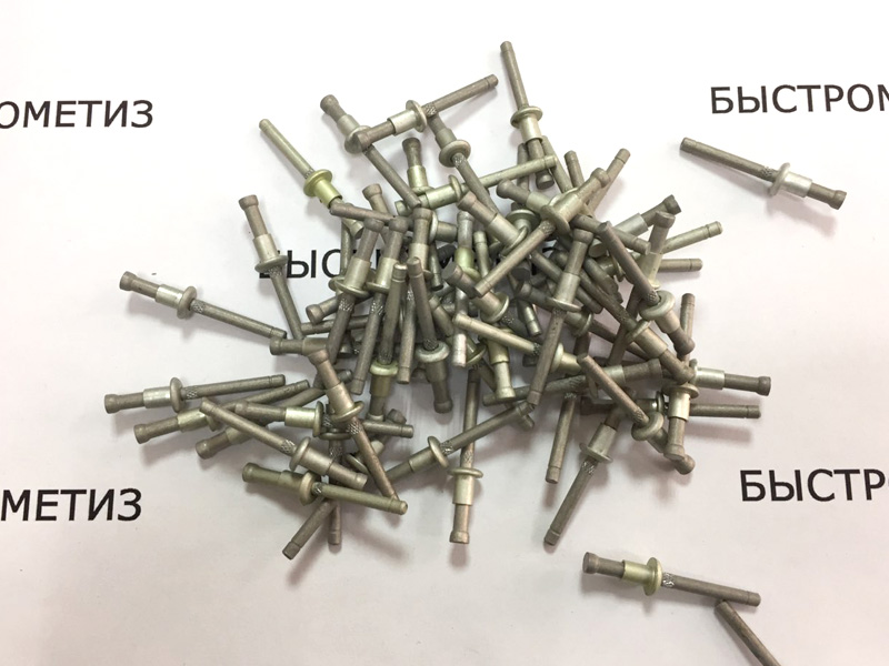 Вытяжной Сердечник (Винт): Сердечник выполняет функцию расклепывания корпуса заклёпки, формируя фиксирующую шляпку на обратной стороне соединяемых материалов. После завершения процесса расклепывания выступающая часть сердечника, как правило, удаляется.