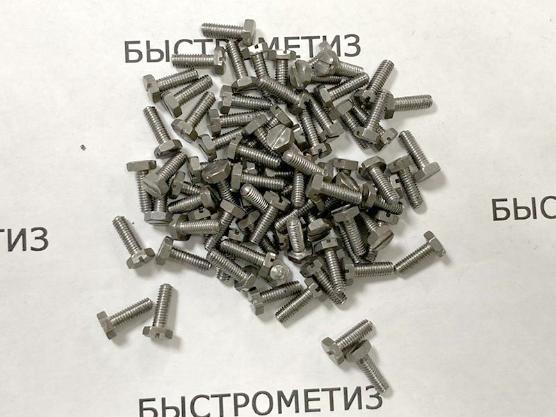 Конструкция винта состоит из шестигранной головки со шлицем и цилиндрического стержня с резьбой.