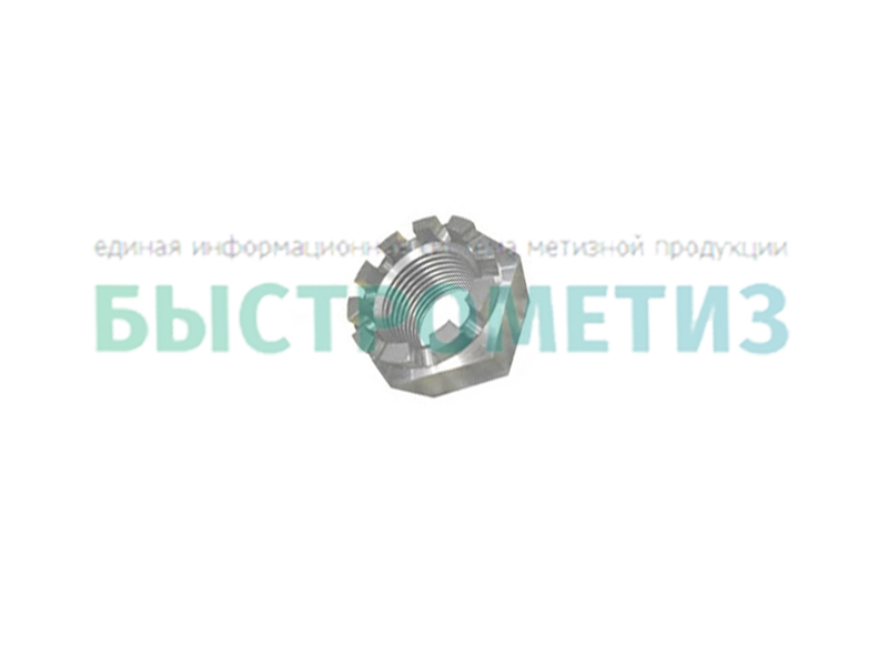 Конструкция гайки шестигранной корончатой состоит из цилиндра с нарезанной внутри резьбой и фигурными прорезями в верхней части в виде короны.