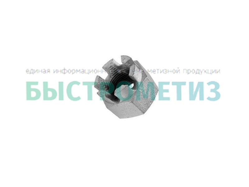 Конструкция гайки состоит из шестигранного стержня с прорезями или видом "короны" и внутреннего отверстия с резьбой.