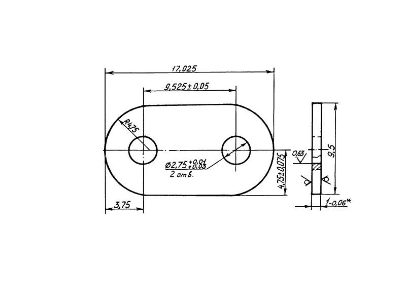 Конструкция состоит из металлической пластины с двумя отверстиями.