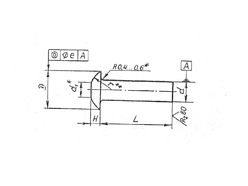Конструкция заклёпки состоит из плоско-скругленной головки и цилиндрического стержня.