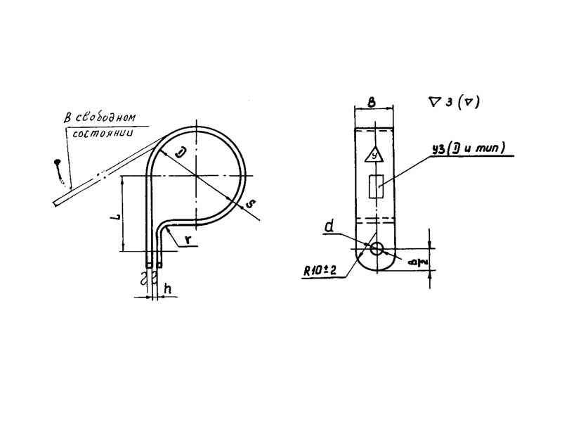 Пример наименования и обозначения хомута типа 1 размером D=10мм из стали марки 20: