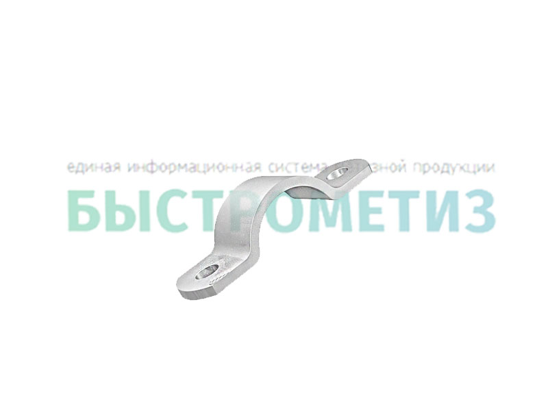 Конструкция хомута состоит из двух пластин, одна из которых согнута по радиуса, и с отверстиями на концах.