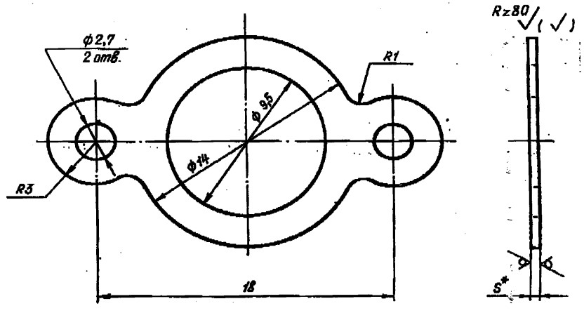 Материал изготовления: для типоразмера 1 -лист из титанового сплава ОТ 4-1 ОСТ 1 90218-76; для типоразмера 2 - сталь 12Х18Н10Т.