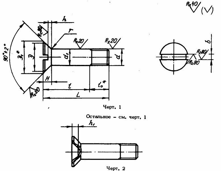 ОСТ 1 31175-80 БОЛТЫ С ПОТАЙНОЙ ГОЛОВКОЙ углом 90 гр. и укороченной резьбовой частью.