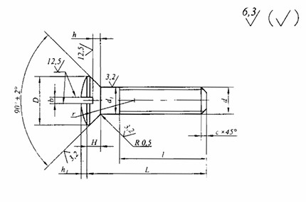 Пример условного обозначения винта с полупотайной головкой диаметром резьбы d=6мм, длиной L=50мм из материала с условной маркировкой 61: