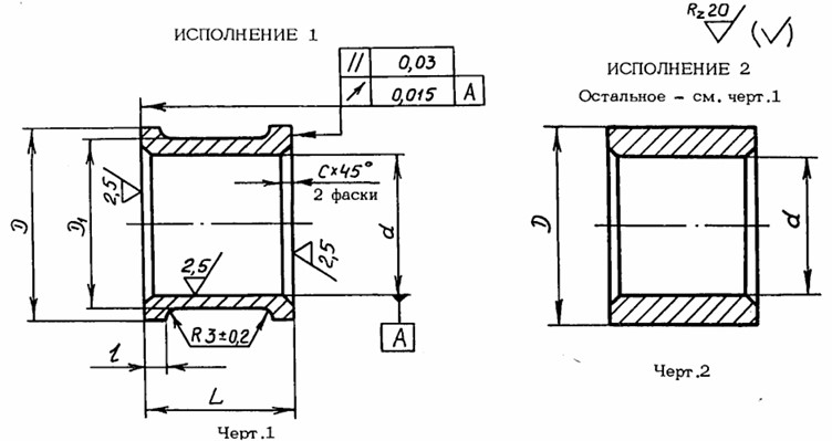 Конструкция втулки состоит из цилиндрической формы с отверстием определенного диаметра. Имеет 2 исполнения.
