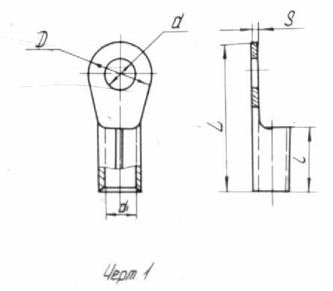 Пример условного обозначения наконечника номинальным сечением 10мм2, с отверстием под контактный стержень диаметром 12мм, с внутренним диаметром хвостовика 5,3мм, изготовленного из меди: