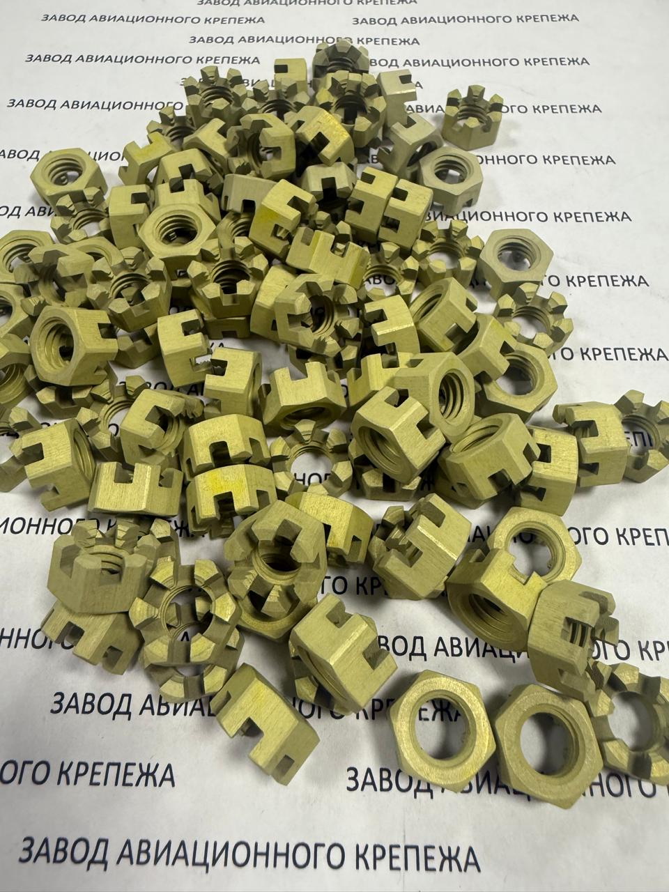 Конструкция гайки состоит из шестигранного стержня с прорезями или видом "короны" и внутреннего отверстия с резьбой.