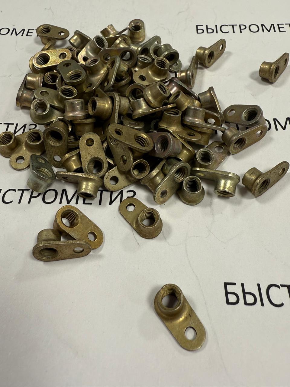 Конструкция гайки состоит из цилиндра с внутренним отверстием с резьбой и овальным основанием, в котором отверстие для крепления.