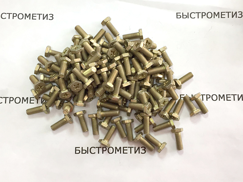 Конструкция винта состоит из шестигранной головки со шлицем и цилиндрического стержня с резьбой.