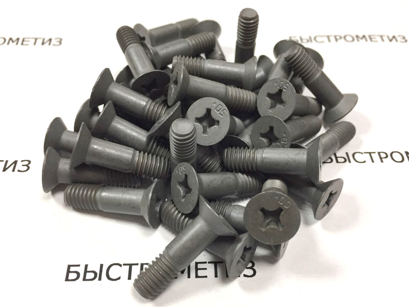 Конструкция болта состоит из потайной головки и цилиндрического стержня с резьбой.