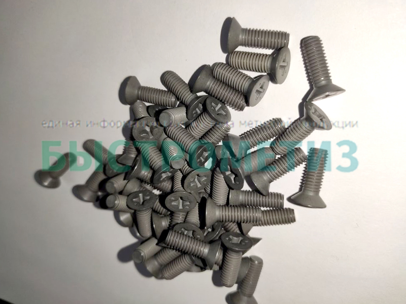 Конструкция винта состоит из потайной головки со шлицем и цилиндрического стержня с резьбой.