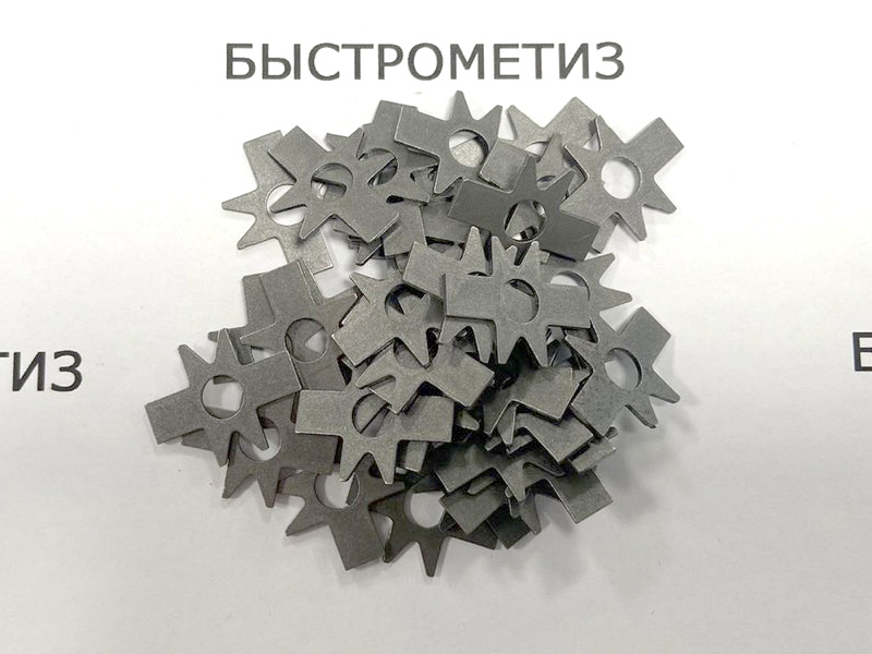 Конструкция шайбы состоит плоской пластины с зубцами, прямыми лепестками и отверстием в центре.