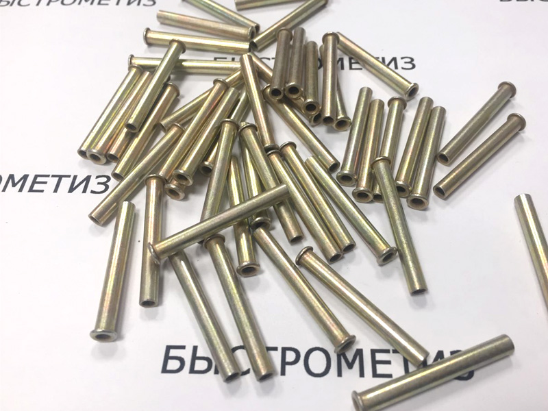 Конструкция заклёпки состоит из трубчатого стержня и плоской головки.